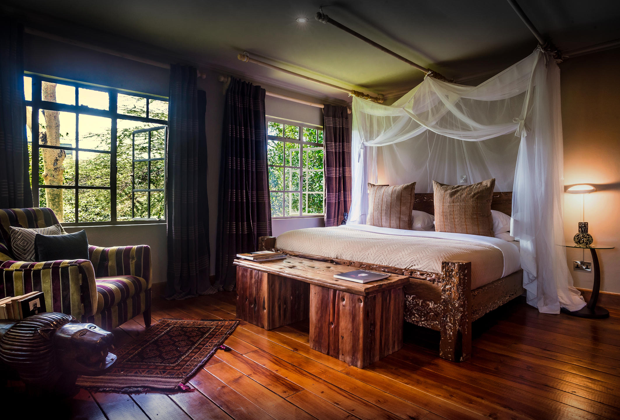 Set on a four-acre forested property in the peaceful suburb of Langata, the former home has been transformed into a living museum and private gallery space that is filled with the family’s own artworks and creations, including their personal library and artefacts that have been collected over a lifetime on the continent.Eden is made up of the main house and tonio’s studio. Both buildings are available for exclusive hire. main house: Once the private residence of Anna and her family, the main house offers an open plan drawing and dining room area, large veranda and 3 ensuite bedrooms. Tonio’s studio: Tonio’s former art studio offers a separate open plan drawing and dining room area, 2 ensuite bedrooms and 3 separate studio lofts.Bordering the Giraffe Sanctuary forest on the outskirts of Nairobi, Eden sits in the heart of Langata and is an oasis of tranquillity. Nairobi National Park, the Sheldrick Wildlife Trust, Karen Blixen Museum and the Giraffe Centre are all within a short driving distance and the hotel is within easy reach of Nairobi’s most interesting restaurants, eclectic shopping experiences and artist studios.2. Segera Retreat